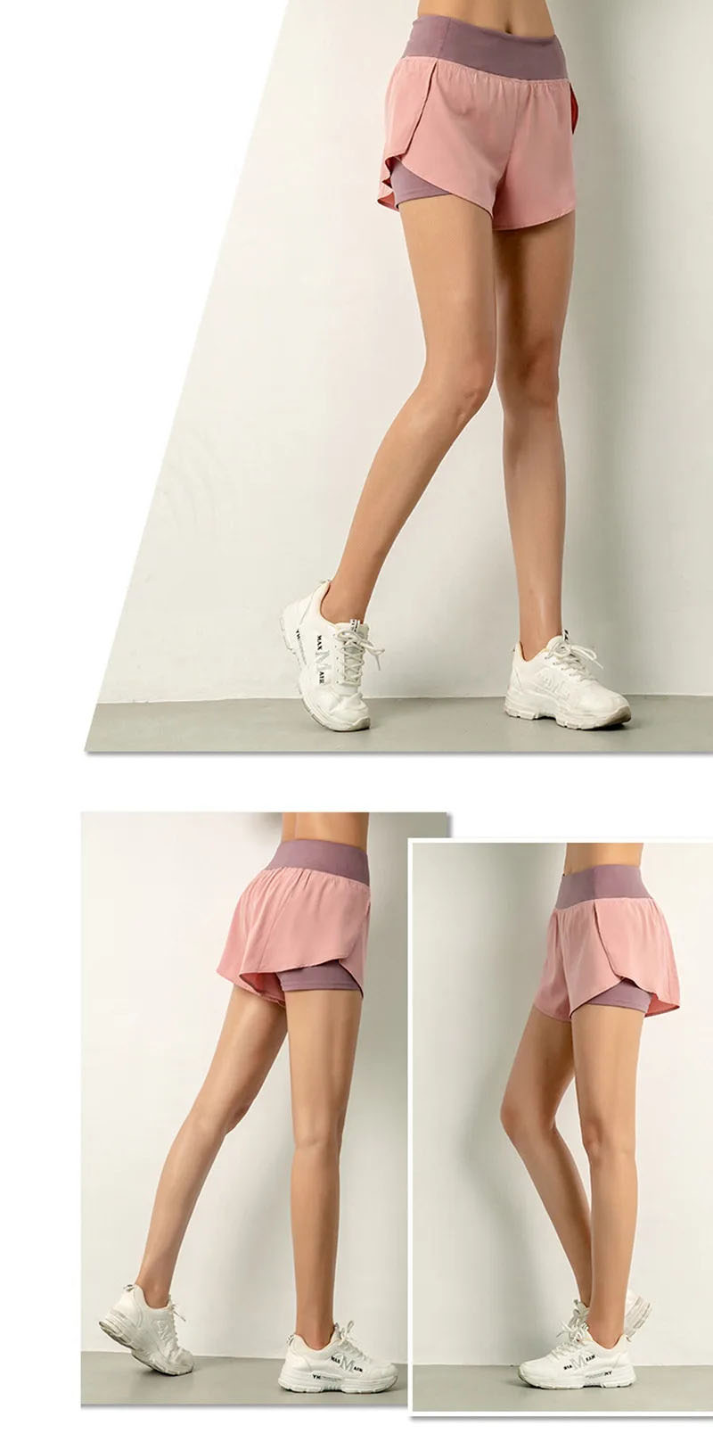 Women Gym Double Shorts Side Pocket Running Shorts Breathable Quick Dry Yoga Women Shorts Workout Fitness Sportwear